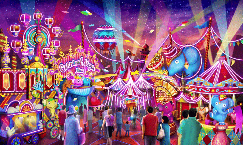 โซนที่ 1 : คาร์นิวัลฟันแฟร์ (Carnival Fun Fair) โซน เครื่องเล่นสำหรับเด็ก ๆ เช่น ถ้วยชาหมุน ชิงช้าสวรรค์ ขับรถแข่ง นั่งรถไฟ ม้าหมุน และโซน จำหน่ายสินค้าที่ระลึก และสินค้าท้องถิ่นทั่วภูมิภาคบ บรรยากาศโดยรอบตกแต่งสีสันสดใส รื่นเริ่ง สนุกสนาน สไตล์คาร์นิวัล