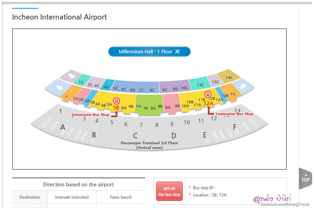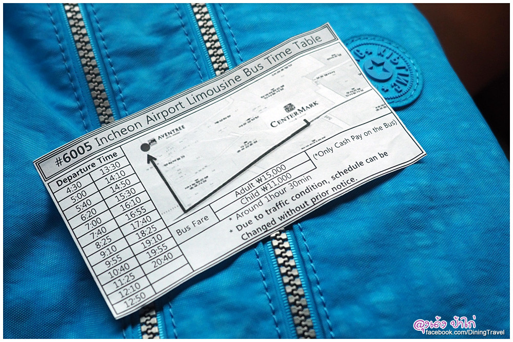 การเดินทาง : จากสนามบิน Incheon ซื้อตั๋ว Airport Limousine Bus สาย 6005 คนละ 15,000 วอน