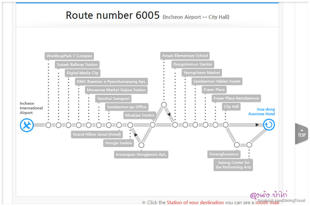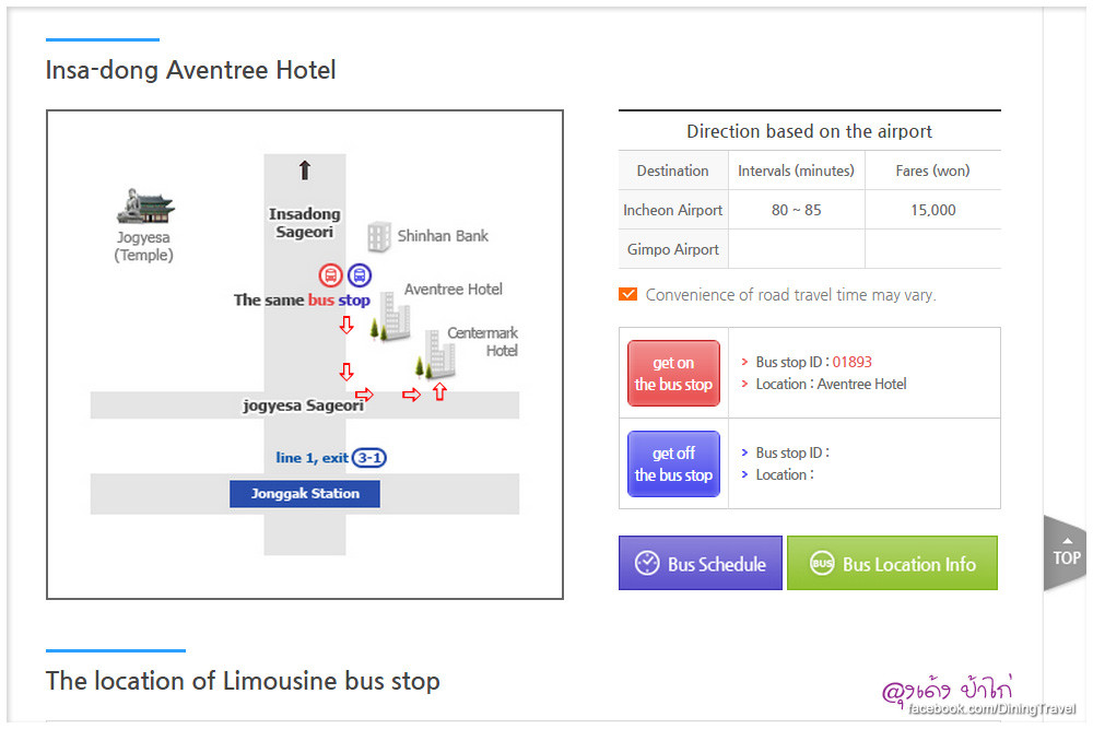 3 Airport Limousine Bus หมายเลข 6005 ค่าโดยสาร 15,000 วอน จอดไม่ไกลจากโรงแรมเดินเพียง 5 นาที ก็ถึงโรงแรม