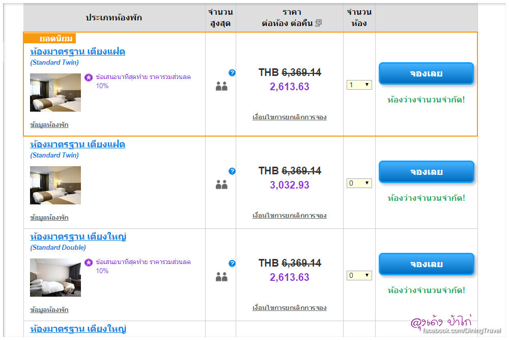 ห้องที่ลุงเด้ง ป้าไก่ พักในทริปนี้ คือ Standard Double (เตียงเดี่ยว)