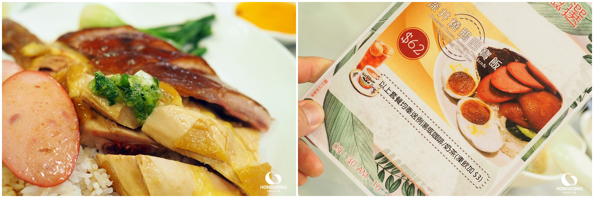 ชามนี้ คุ้มสุดๆ ... ห่านย่าง + ไก่ต้ม + ไส้กรอกฮ่องกง + ไข่เค็ม 1 ฟอง ราคา 62 เหรียญ สั่งพร้อม ชามะนาวเย็น + 12 เหรียญ