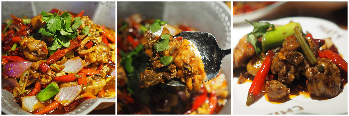 ไก่ผัดพริกเสฉวน : Tingling & Spicy Chicken Casserole ราคา 158 เหรียญ เสิร์ฟมาในชามเปลโลหะ ด้านล่างจุดไฟ อุ่นให้ร้อนตลอดเวลา ชามนี้และ กินไป ซู๊ดดด ปากไป เผ็ดได้ใจจริงๆ (ชามนี้ ระดับความเผ็ด แบบ ปานกลาง)