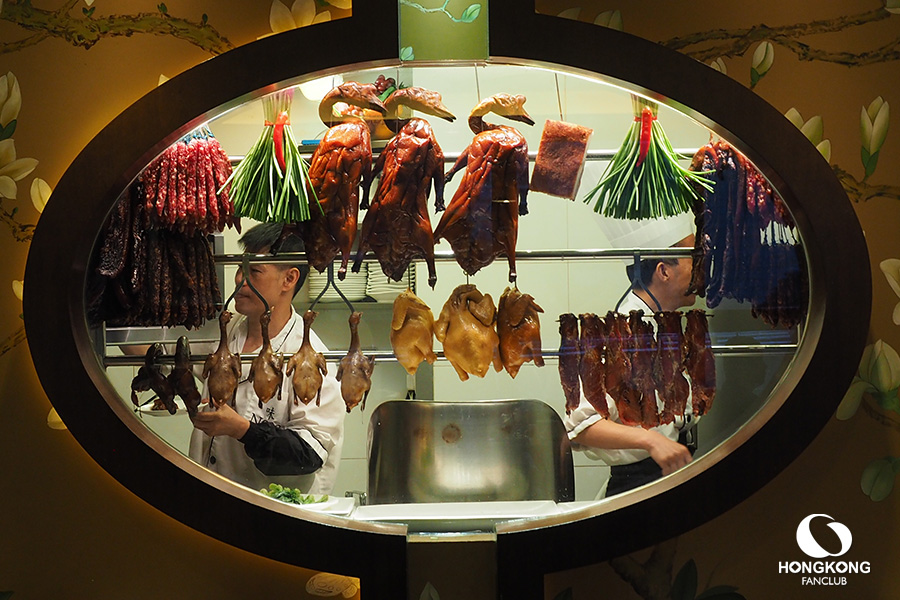 บรรยากาศภายในร้านตกแต่งในสไตล์จีนร่วมสมัย เน้นความหรูหรา ด้วยสีทอง และเฟอร์นิเจอร์สีไม้เข้ม มีกระจกโชว์ ห่านย่าง หมูย่าง ไก่ นกพิราบ และอื่นๆ