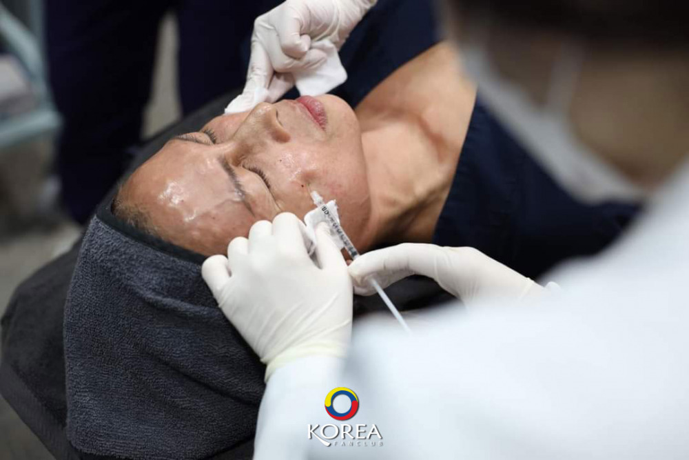 คุณหมอได้ทำการประเมินมาก่อนหน้านี้แล้วว่าเคสของ ลุงเด้งป้าไก่ นี่ต้องจัดให้เต็ม เพราะริ้วรอยค่อนข้างเยอะ เดี๋ยวเวลาไปเที่ยวแล้วจะถ่ายรูปไม่สวย วันนี้ก็เลยเน้น ๆ ที่บริเวณหน้าผาก / หว่างคิ้ว / ตีนกา / กราม ค่ะ เนื่องจากว่าฤทธิ์ยาชายังอยู่ เราก็จะไม่รู้สึกเจ็บเท่าไหร่ ยังพอทนได้ ชิว ๆ ค่ะ