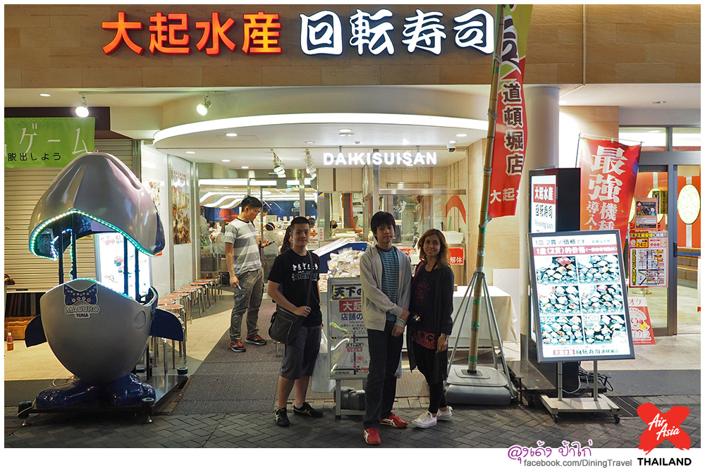 Daiki Suisan ซูชิสายพาน ที่มีลูกค้าแน่นตลอดวัน อยู่ในถนนสายอาหารย่าน Dotonbori (โดทมโบะริ)  เริ่มต้นจากร้านค้าส่งปลาตากแห้ง เติบโตขึ้นมาเป็นร้านค้าส่งทูน่า  และขยายเข้าสู่กิจการ Daiki Suisan ร้านซูชิสายพาน ราคาประหยัด ที่ใช้วัตถุดิบที่สด สะอาด และอร่อย บริการให้กับลูกค้าโดยมีฐานอยู่ที่เมืองโอซากา และมีสาขามากกว่า 44 สาขาทั่วประเทศ