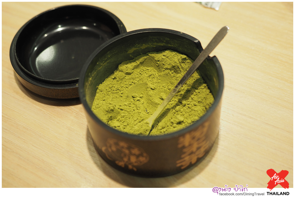 ร้านมีบริการชาเขียว พนักงานจะให้แก้วมา 1 ใบ บนเคาน์เตอร์ก็จะมีก๊อกน้ำ และ กระปุกใส่ผงชาเขียว ให้เราตักผงชาเขียวใส่ในแก้ว จากนั้นนำแก้วไปกดน้ำร้อน