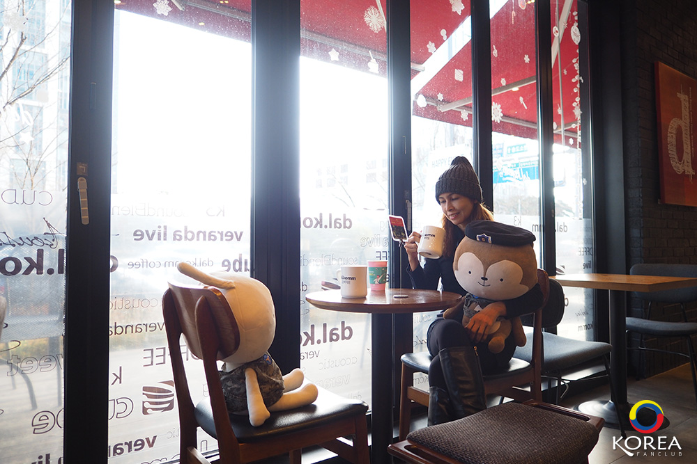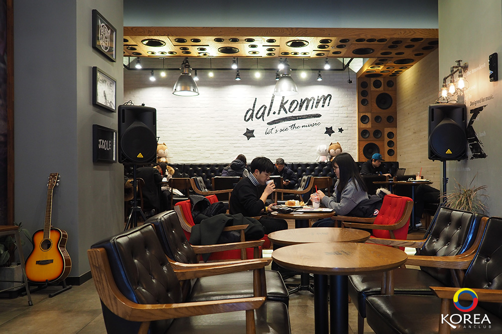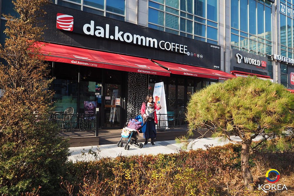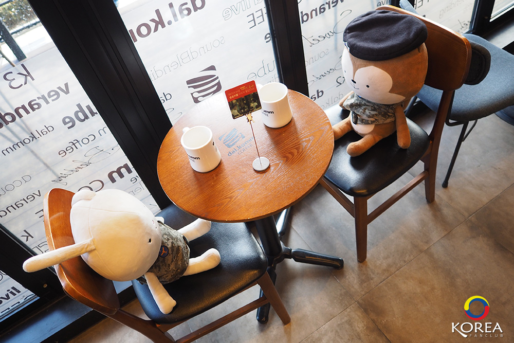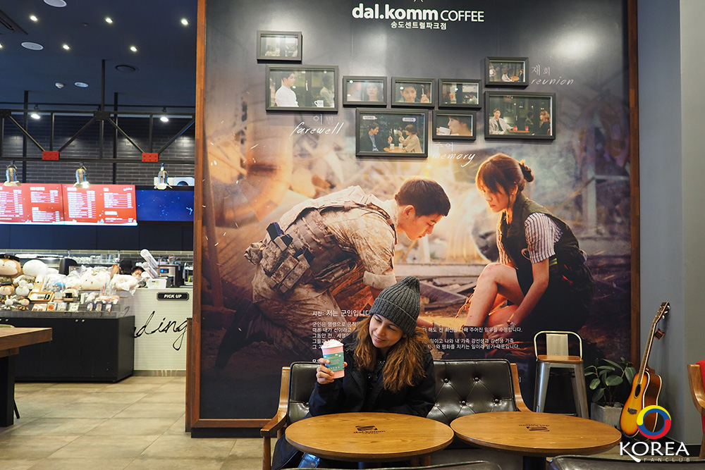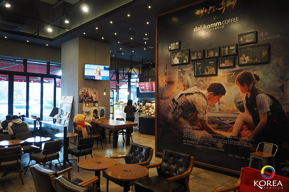 dal.komm Coffee สาขา Songdo Central Park ตามละครซีรี่ย์เรื่อง Descendants of the Sun คือฉากที่กัปตันยู-หมอคัง (พระเอก-นางเอก) บอกเลิกกันภายในร้านนี้