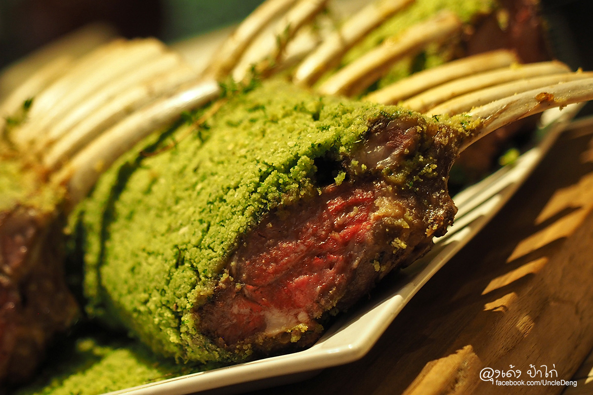 Live Station : Rack of Lamb ซี่โครงแกะ (สีเขียวที่เคลือบซี่โครงแกะคือสมุนไพรที่ใช้ในการหมัก)