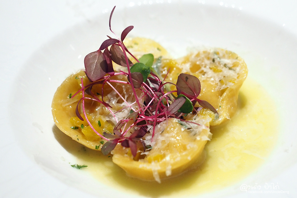 ราวีโอลี (Ravioli) เชฟทำแป้งเอง อร่อยมาก เวลาสั่งแต่ละจานอาจจะต้องรอนานหน่อย เพราะเชฟบรรจงทำแต่ละจานใช้เวลาพอสมควร