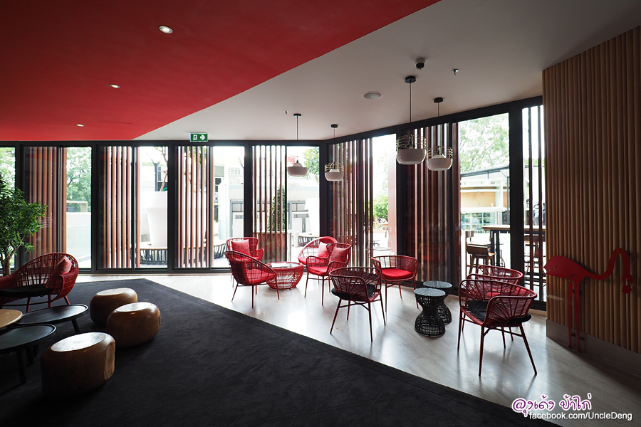 LOBBY : โดดเด่นด้วยการใช้สีแดง และดำ ตัดกับพื้นสีขาว เรียบง่ายและช่วยให้ดูมีพลัง