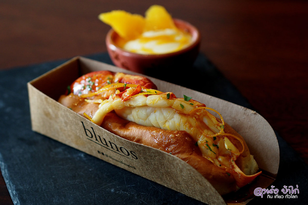 Lobster Roll : ล็อบสเตอร์โรล เป็นเมนูที่ลูกค้าสั่งกินมากที่สุด ใช้กุ้งล็อบสเตอร์จากแคนาดา วางบน Garlic-buttered soft roll เสริมรสด้วย shellfish oil