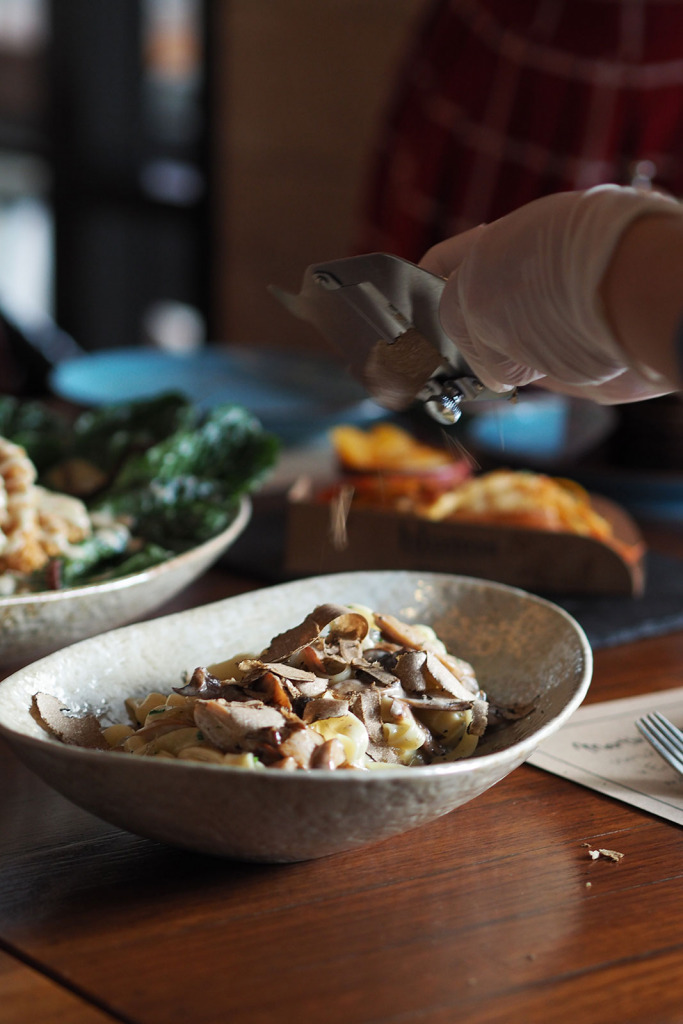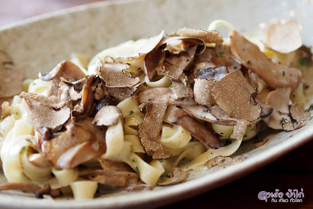 พาสต้าจานนี้...รสชาตินุ่มนวลมากๆ เส้นพาสต้าสุกกำลังดี คลุกเคล้ามากับซอสครีมหอมมัน ทันทีที่มาเสิร์ฟที่โต๊ะก็จะมีพนักงานนำ ทรัฟเฟิลดำสด ฝานเป็นแผ่นบางๆ ลงในชาม กินรวมกัน ครีมมี่สุดๆ และด้วยราคาเพียง 590- แล้วใช้สิทธิ์ ลดราคาได้อีก 50% บอกเลยว่า คุ้มมากๆ