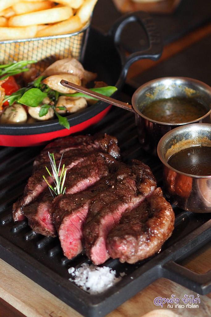 เพื่อนๆ ที่ชอบกินเนื้อวัว ต้องมาชิม เนื้อ Rib-eye อบ เสิร์ฟ แบบ Medium กับ Medium Rare เนื้อนุ่ม ซอส ก็มีหลายแบบให้เลือก บอกเลยจานนี้ไม่ผิดหวัง