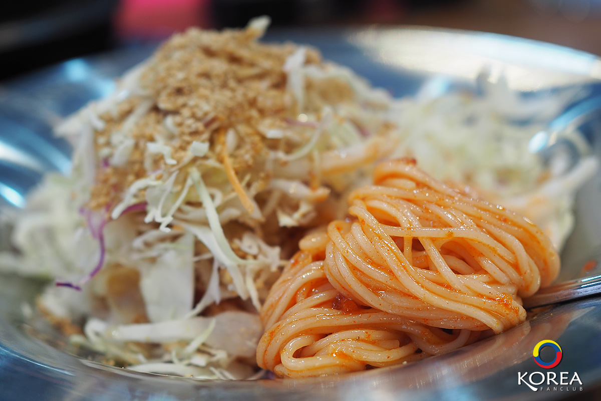 อย่างที่ ลุงเด้งป้าไก่ บอกไปแล้วว่า ร้านนี้ มีเมนู Set อยู่ 2 แบบ : จานนี้คือ ยำบะหมี่เย็น .. ด้านในมีเส้นบะหมี่เส้นเล็ก สไตล์เกาหลี เสิร์ฟแบบเย็น รสเผ็ดๆ หวานๆ โรยงาขาวคั่วเพิ่มความมัน อร่อยเกินความคาดหมาย ถ้าเพื่อนๆ มากิน แนะนำเมนูนี้เลยครับ