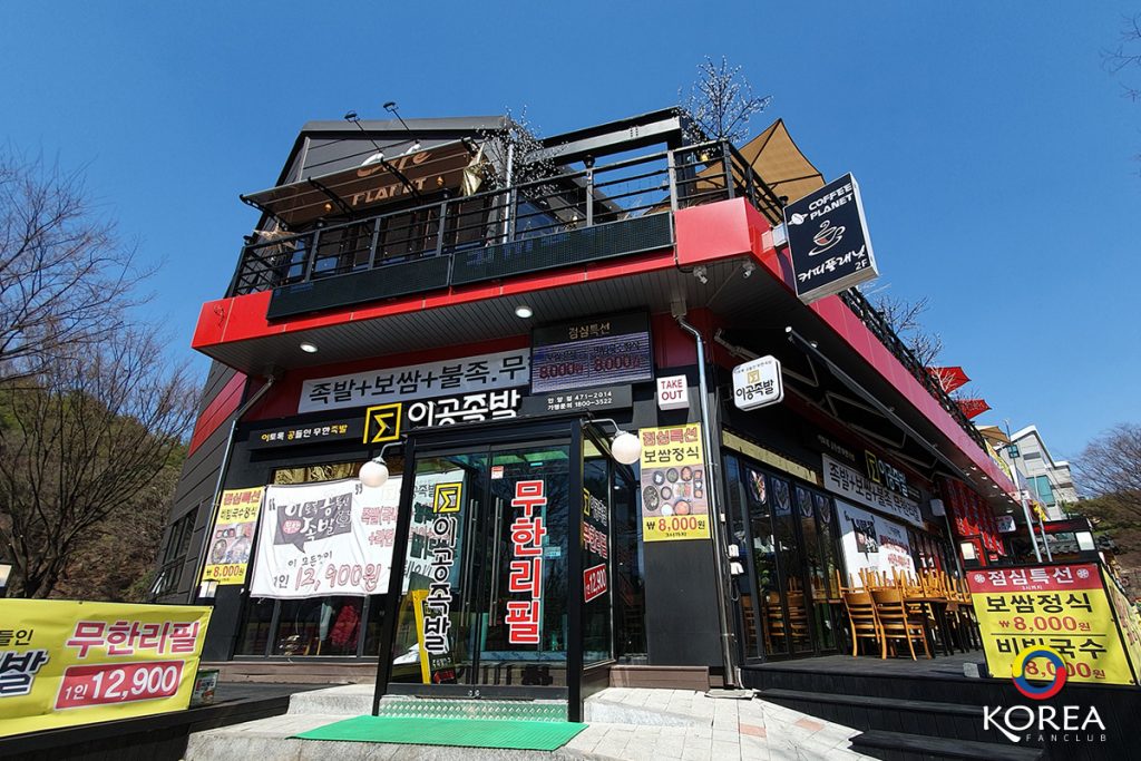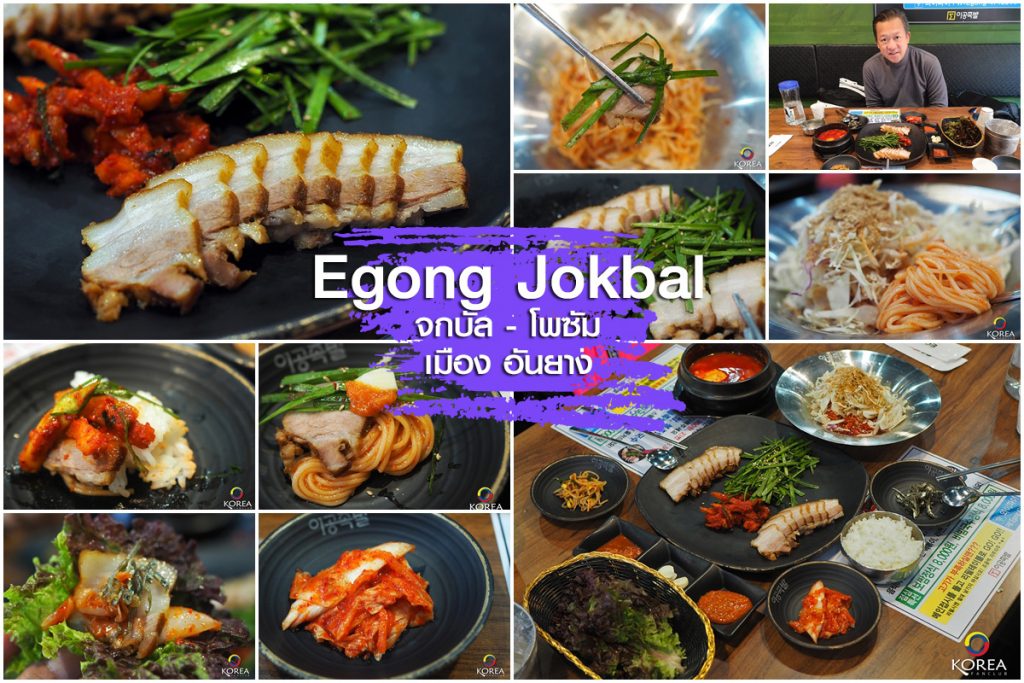 ร้าน อีคง จกบัล (Egong Jokbal) มีหลายสาขา สาขานี้ตั้งอยู่ที่ อันยาง อาร์ต ปาร์ค ร้านนี้ เพื่อนๆ ต้องเดินผ่านอยู่แล้ว เมนูเด่นของร้านนี้ จกบัล (족발 - ขาหมูต้มซีอิ้ว) กับ โพซัม (보쌈 หมูสามชั้นต้มซีอิ้ว) ราคาชุดละ 8000 วอน พร้อมเครื่องเคียงมากมาย