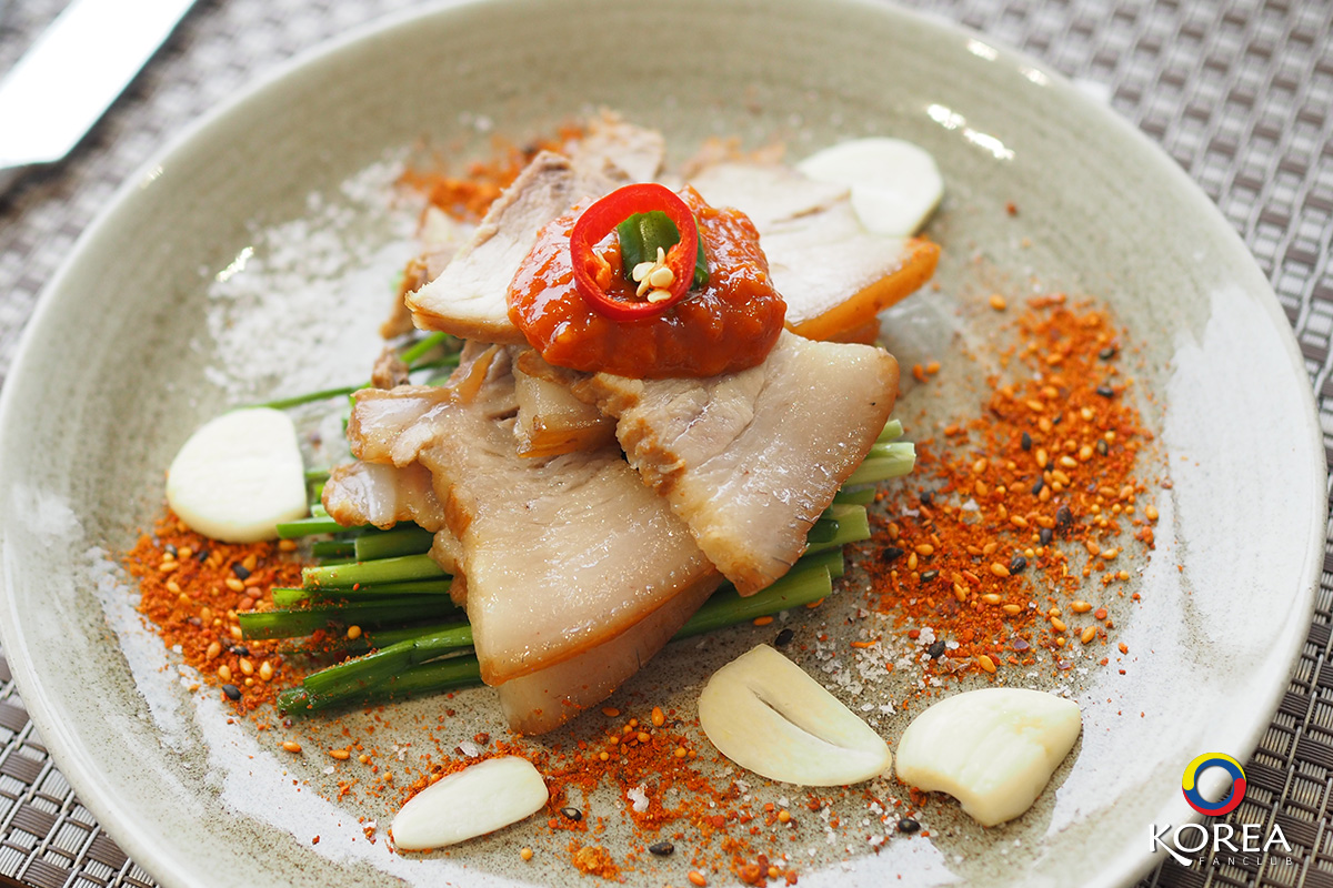 หมูต้มซีอิ้วสไตล์เกาหลี เห็นเรียบง่ายแบบนี้ อร่อยมากเลยนะ เพราะใช้ เนื้อหมูดำ ของเกาะเชจู ... หมูดำเชจู ได้รับการยกย่องให้เป็นหมูที่ดีที่สุดของเกาหลีเลยครับ