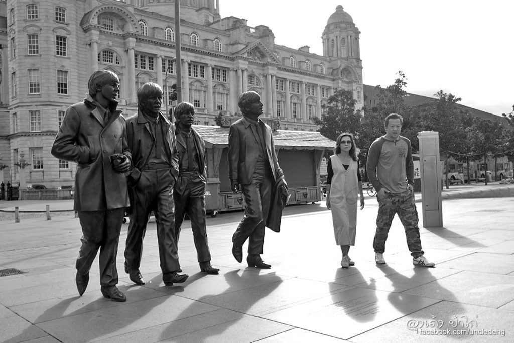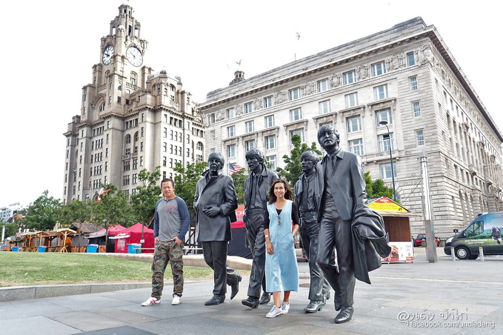 ลุงเด้งป้าไก่ เป็นแฟนคลับ The Beatles มาตั้งแต่สมัยเรียน ทริปนี้เราพยายามเดินทางไปยังสถานที่ต่างๆ ที่มีความเกี่ยวข้องกับวงดนตรีวงนี้ให้มากที่สุด ตลอด 2 วันที่ผ่าน เราได้ย้อนประวัติศาสตร์ ไปกับ The Beatles และวันนี้ก่อนเดินทางไปยัง Oxford เราแวะมาชม Beatles statue รูปหล่อโลหะ ใกล้กับ Pier Head