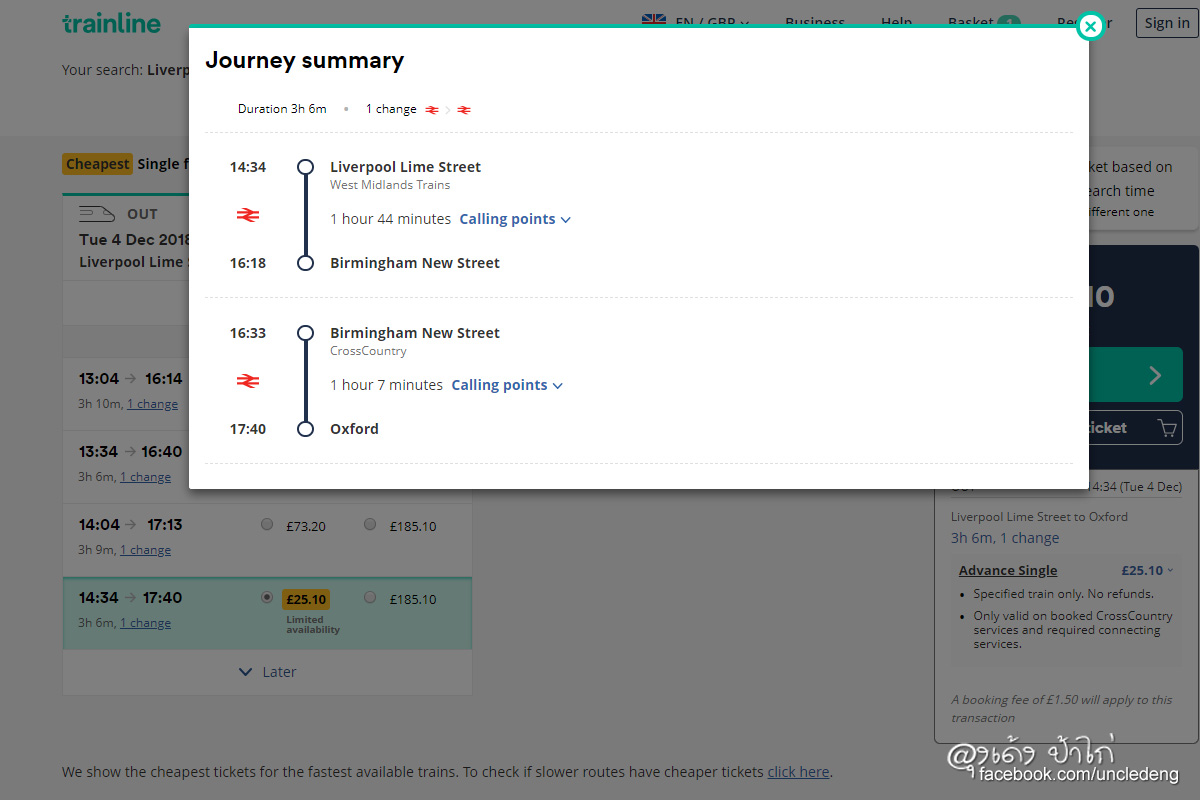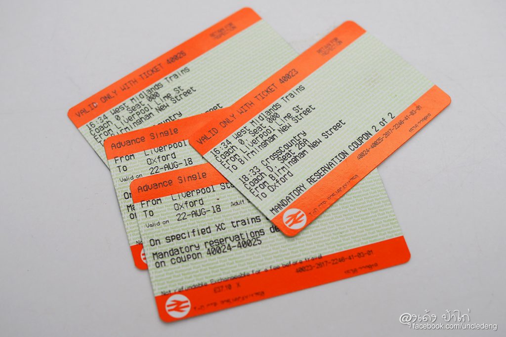 จองตั๋วรถไฟล่วงหน้าที่ Trainline https://www.thetrainline.com/ แนะนำให้จองล่วงหน้าก่อนเดินทาง ระยะเวลาในการเดินทางจาก Liverpool -> Oxford ใช้เวลาประมาณ 3 ชั่วโมง 6 นาที