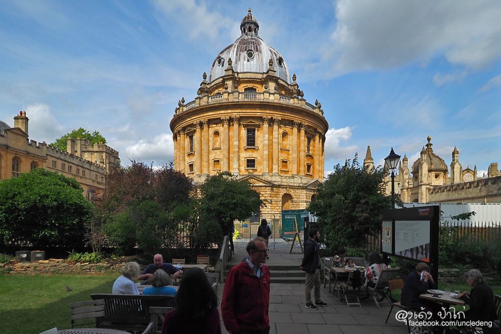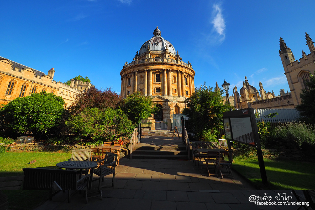โดมสวยๆ สไตล์ neo-classical คือ Radcliffe Camera เดี๋ยวเราจะไปถ่ายรูปกันที่นี่ เป็นอาคารหนึ่งที่สวยที่สุดของเมือง oxford มีภาพนี้อยู่ในเอกสาร ท่องเที่ยวออกซ์ฟอร์ด แทบทุกชนิด