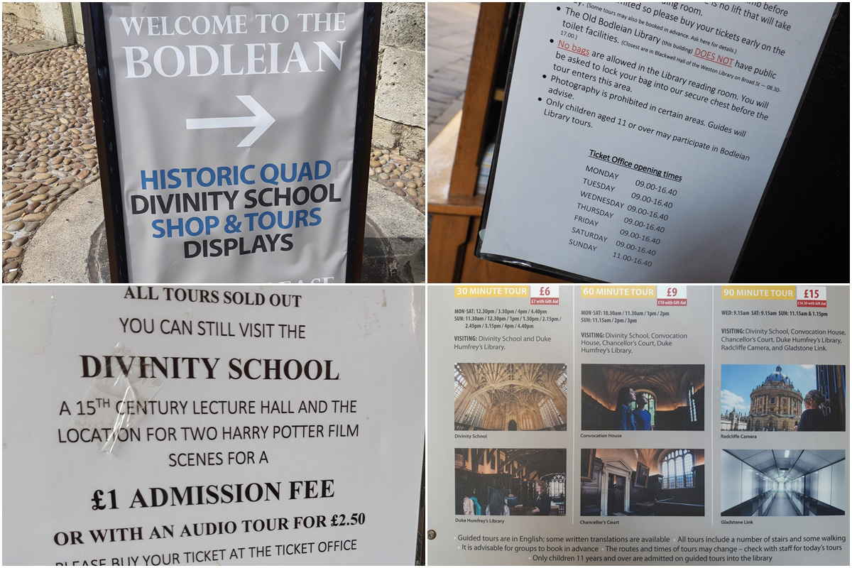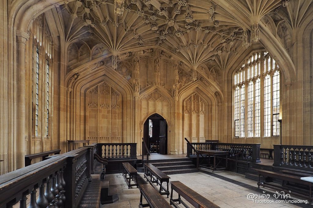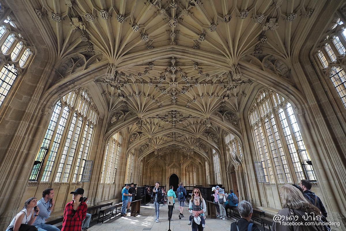 สถานที่ต่อไปคือ Bodleian Library & Divinity School ซึ่งก็อยู่ใกล้ๆ กับ Hertford Bridge อาคารนี้คือห้องสมุดที่ใหญ่ และเก่าแก่ที่สุดแห่งหนึ่งในยุโรป เป็นที่รวบรวมหนังสือหายาก หนังสือต้นฉบับ เอกสารสำคัญทางประวัติศาสตร์ แผนที่