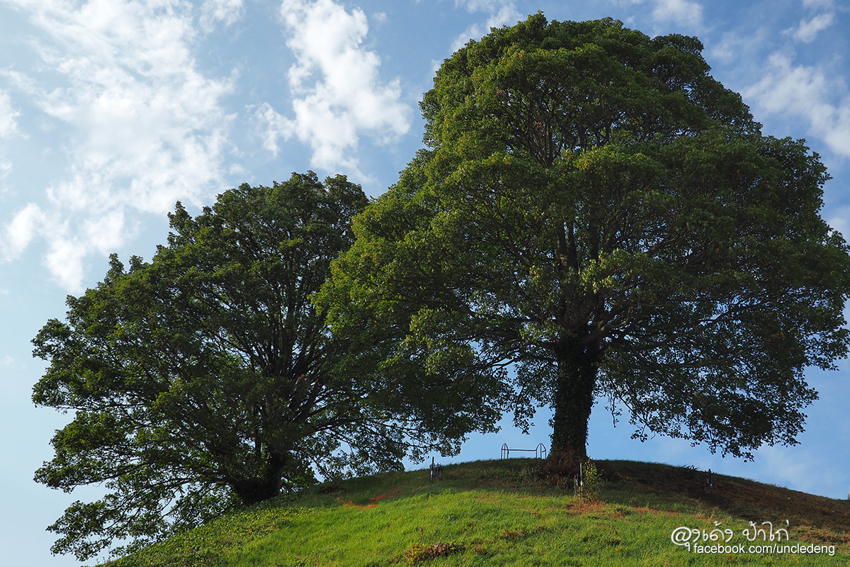 บนเนินดิน มีต้นไม้หลักอยู่ 2 ต้น ปัจจุบันสวยงาม และโดดเด่นมาก