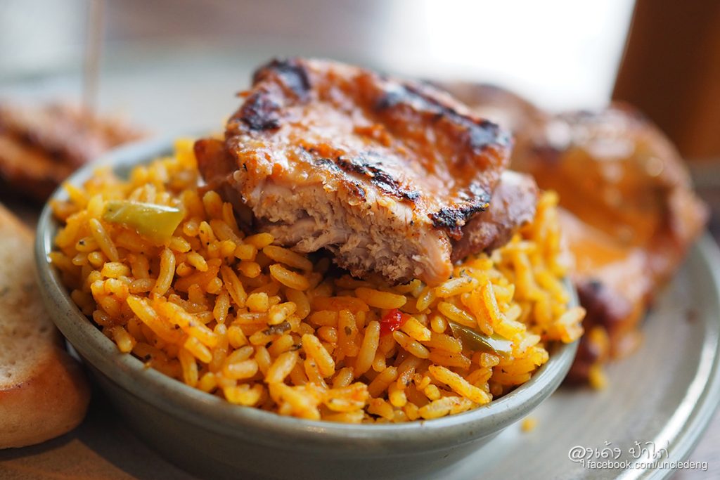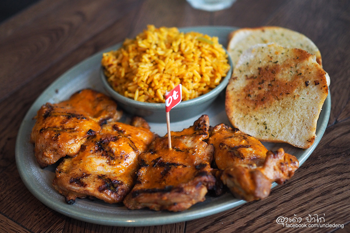 ชุดนี้... Peri-Peri Chicken : 4 Chicken Thighs (สะโพกไก่ไร้กระดูก) + 2 reg. Sides (ข้าว + ขนมปัง) ราคา 11.25