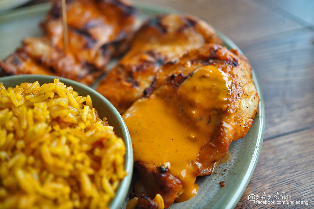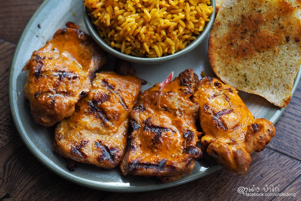เนื้อสะโพกไก่ ไร้กระดูก หมักเครื่องเทศ และพริก Peri-Peri นานกว่า 24 ชั่วโมง ย่างบนเตาถ่าน