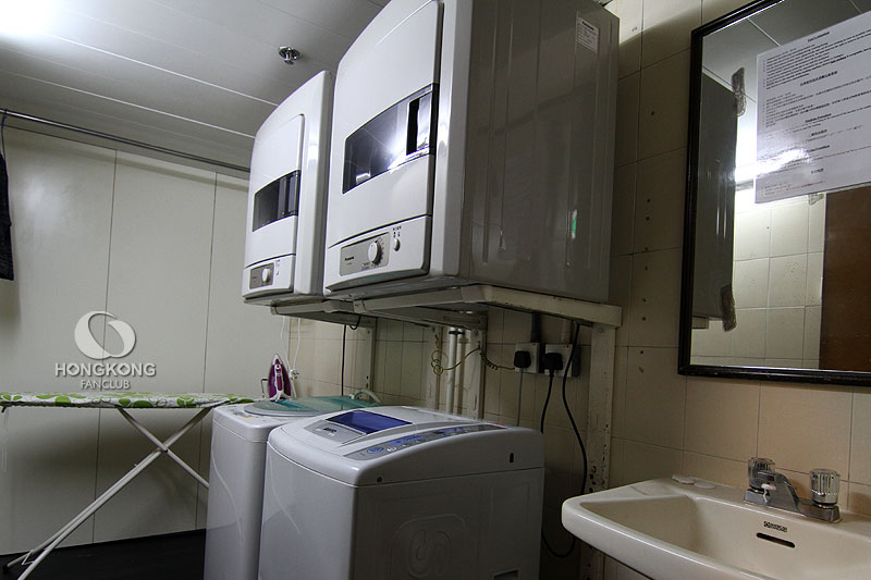 ที่ริมทางเดินมีตู้หยอดผงซักฟอก และน้ำยาปรับผ้านุ่ม