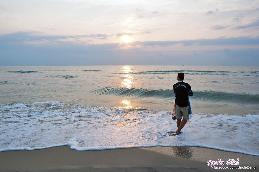 ช่วงเช้า พระอาทิตย์ขึ้นจากขอบฟ้าที่ชายหาด