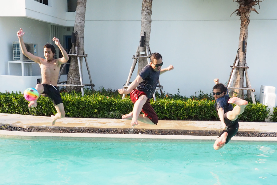 ลูกๆ ชวนกระโดดน้ำ ... ลุงเด้งก็กระโดดด้วย ถึงใหนถึงกัน เพราะช่วงเย็น "ทุกคน" ก็ต้องเข้าครัวทำกับข้าวด้วยกัน อันนี้เป็นธรรมเนียมของบ้านเราเลยครับ
