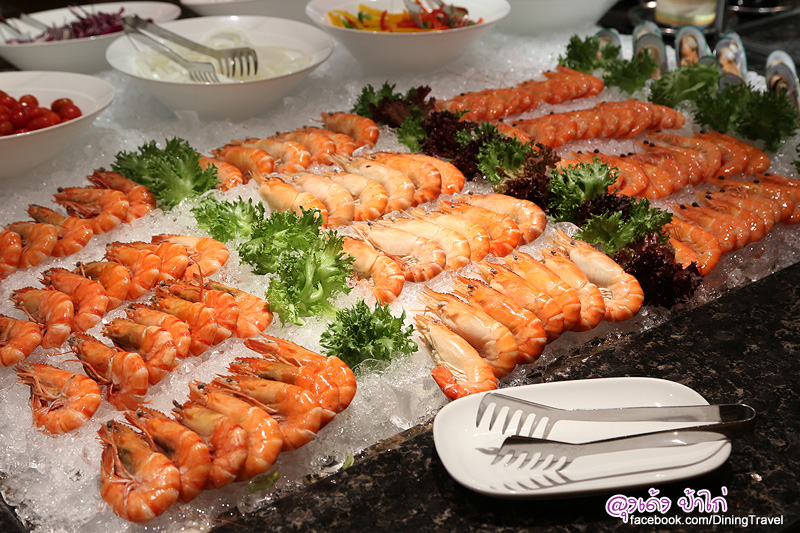ถัดจากโคลคัทส์ในแบบจีนมามาถึงมุมสลัด ที่คุ้นเคยกันดีก็คงเป็นสลัดเนื้อปู สลัดกุ้งแก้ว และอีกหลายรายการ สำหรับคนชอบกุ้ง ก็มีกุ้งลายเสือ กุ้งก้ามกราม รวมถึงหอยแมงภู่ นอนบนน้ำแข็งรอให้เลือกตัดิชมได้ไม่จำกัด