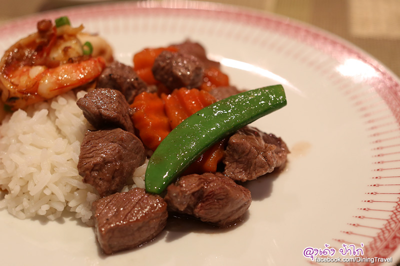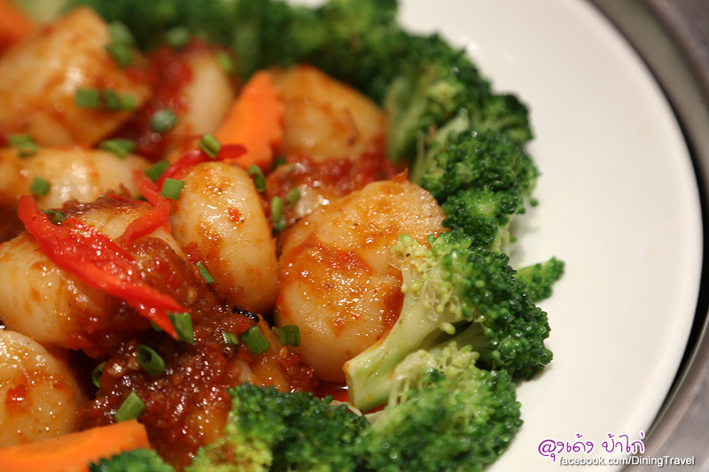 อาหารร้อน มีให้เลือกไม่ต่ำกว่า 10 รายการ ที่เน้นๆ ก็จะเป็นกุ้งผัดพริกแบบจีนใช้กุ้งสดตัวใหญ่ผัดได้รสชาติ หอยเชลล์สดผัดเสฉวน หน่อไม้ทะเลเจี้ยนน้ำมันหอย ปลาหิมะนึ่งซี่อิ้ว