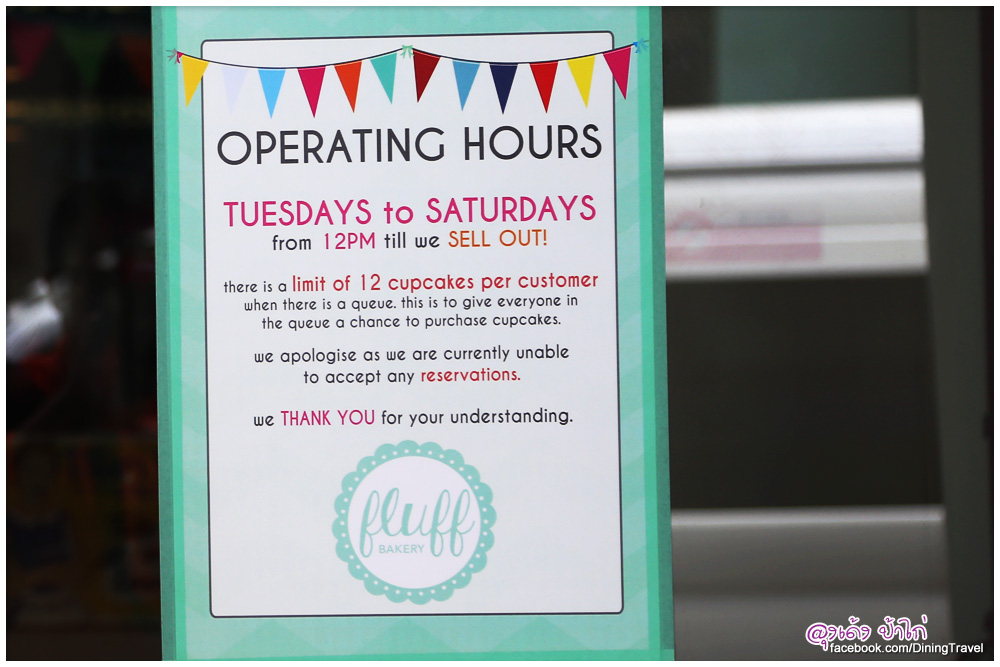 Fluff Bakery ร้านขายคัพเค้ก ที่ก่อนร้านเปิด 30 นาที ก็มีลูกค้ามาต่อคิวยาวเหยียด ร้านนี้เปิดเฉพาะวัน อังคาร - เสาร์ ตั้งแต่เที่ยงตรง ยาวไปจนของหมด ซึ่งบ้างวัน 2 ชั่วโมงก็หมดเกลี้ยง ให้บริการแบบซื้อกลับบ้านเท่านั้น จำกัดจำนวนซื้อได้คนละ 12 ชิ้น หรือ 2 กล่องเท่านั้น
