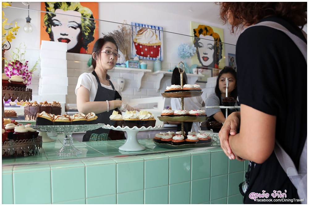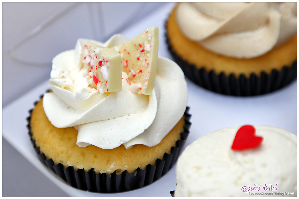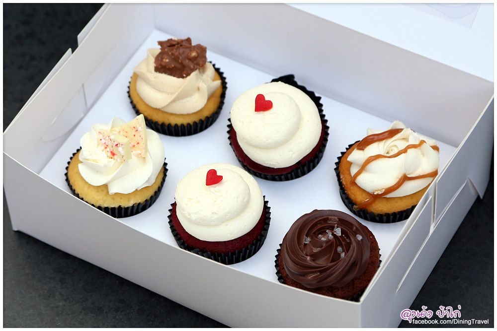 ในแต่ละวันจะมี คัพเค้ก สลับเปลี่ยนหมุนเวียนกัน ราคา อยู่ที่ 4 เหรียญ