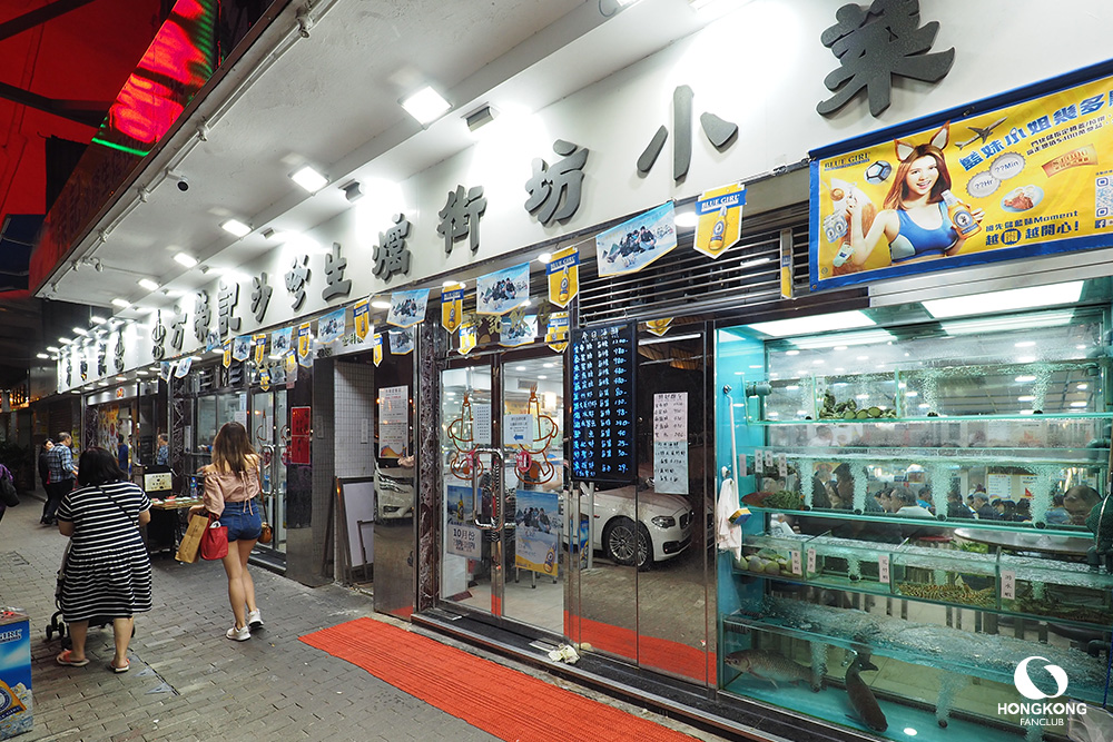 Fong Wing Kee Hot Pot ร้านริมทางที่ใหญ่มาก หน้าร้านมีตู้ปลา มีอาหารทะเลสดๆ ให้เลือกมากพอสมควร