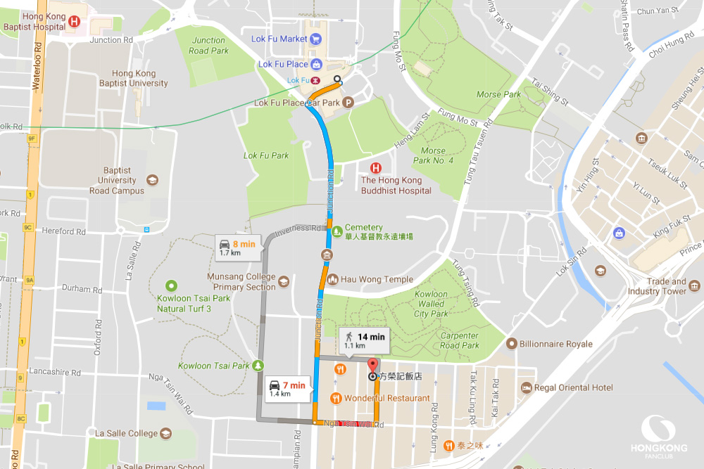 วิธีที่ 2 - นั่ง MTR มาลงสถานี Lok Fu ทางออก B เดินตามทางใช้เวลาประมาณ 15 นาที ถึงหน้าร้าน