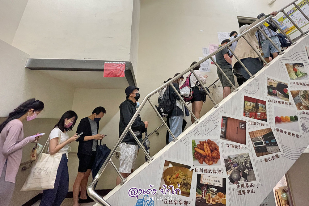 น้ำเต้าหู้ ไต้หวันร้านอยู่ชั้น 2  :  คิวก็เลื้อยขึ้นไปตามบันใด ยาวๆ ไป