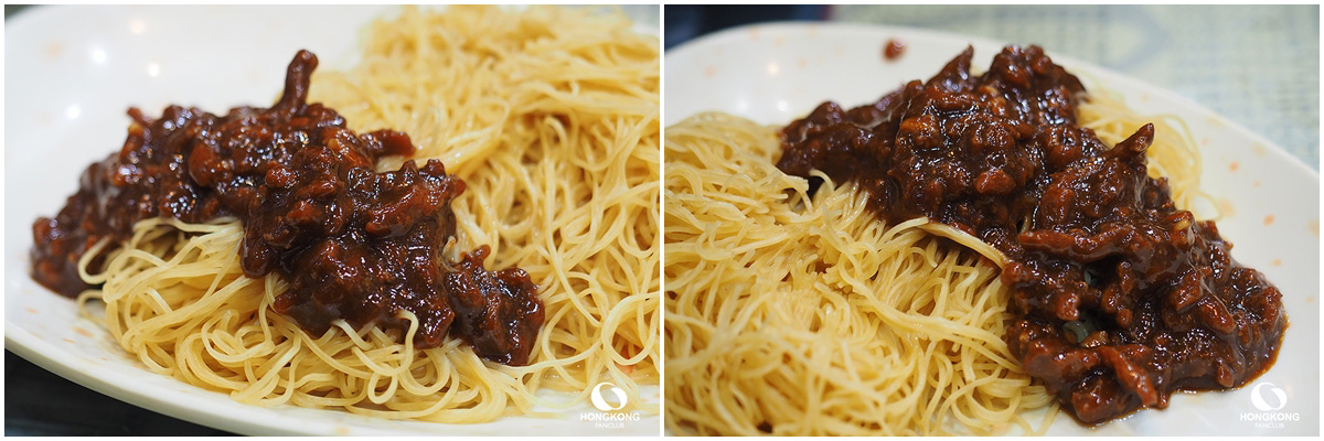 บะหมี่ไข่ของฮ่องกง กินคู่กับ หมูซอสพริก รสชาติ หวาน เค็ม เผ็ด คลุกเคล้ากับเส้นบะหมี่เหนียวๆ กรุบๆ คีบเข้าปากเคี้ยวอร่อยมาก รสชาติเต็มปากดีจริงๆ