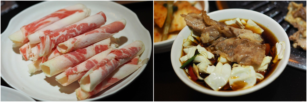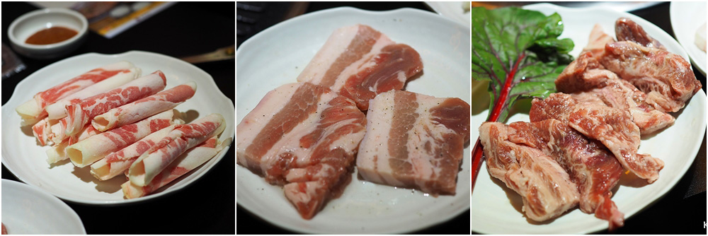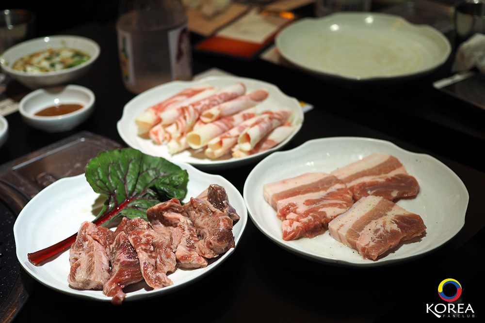 จานแรก Bisket Point Cut ราคา 9,000 วอน / Grilled Pork Belly (หมูสามชั้น) 1,100 วอน / Rib-eye ราคา 11,000 วอน