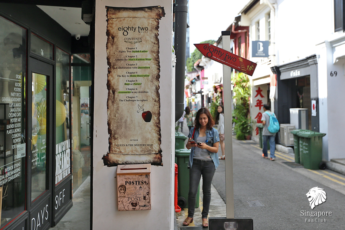 หากคุณเป็นสาวนักช้อป ควงคู่มากับ หนุ่มมาดเซอร์ จะต้องชอบถนนเส้นนี้เป็นที่สุด เป็น จุดถ่ายรูป สิงคโปร์ ที่ฮิตมาก ตึกแนวชิโนโปรตุกีส ได้รับการตกแต่งให้เป็นช้อปเฮ้าส์ แต่งแต้มสีสันตามสไตล์เจ้าของร้าน ซึ่งก็เป็นกลุ่มผู้นำสตรีทแฟชั่น ตั้งเรียงรายในซอยเล็กๆ นี้ ตลอดสองข้าง