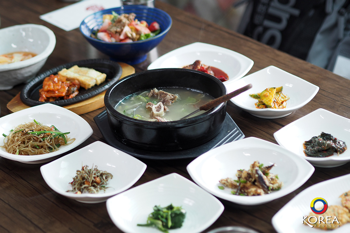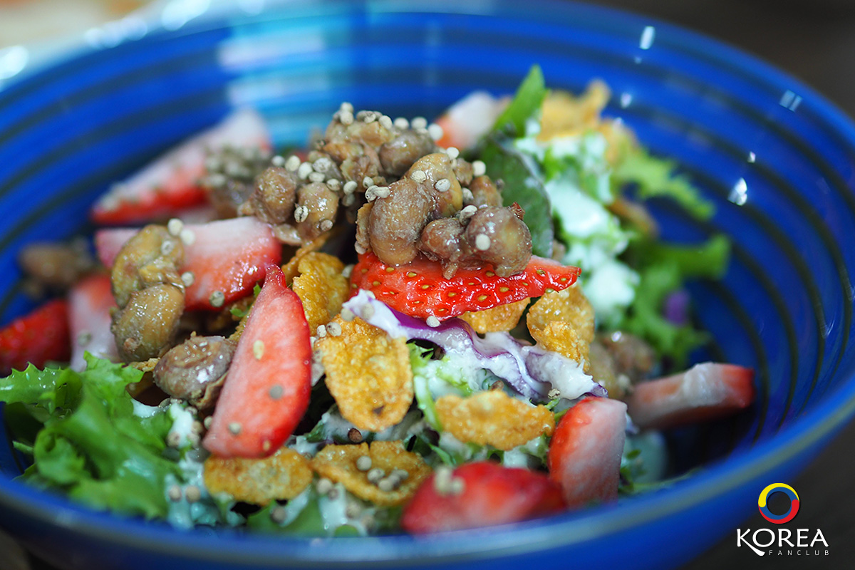 ว่าด้วยเครื่องเคียง ของร้านนี้ จัดมาเยอะมาก โดยเฉพาะ สลัดผลไม้ถั่วหมัก เฮ้ย.... อร่อยมาก กินแล้ว สดชื่นมากๆ เลย จริงๆ แล้วร้านนี้ ขึ้นชื่อเรื่องถั่วหมัก ด้วยนะครับ หน้าร้านมีตู้ขายให้ลูกค้าซื้อกลับบ้านเป็นกล่องเลย และ เพิ่งมารู้จากเจ้าของร้านว่า ... เมนูที่เด่นที่สุดของร้านคือ Doenjang jjigae ซุปเต้าเจี้ยว แต่ เราไม่ได้สั่งน่ะซิครับ ก็กินซะอิ่มแปร่แล้วอ่ะ 555