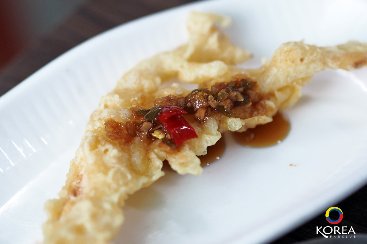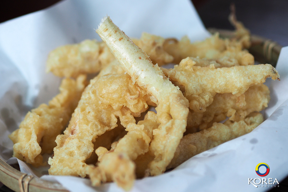 โสมทอด จานนี้ 20,000 วอน ... ตอนแรกนึกว่าจะกินยาก หรือ ขมกินไม่ได้ แต่จริงๆ แล้ว อร่อย กินได้ สบายๆ ที่ร้านใช้โสม ทั้งตัว ชุปแป้งทอด ทอดสวยสีเหลืองทองเลยครับ