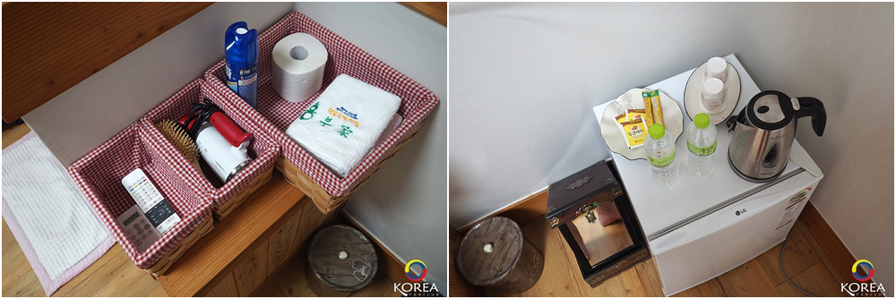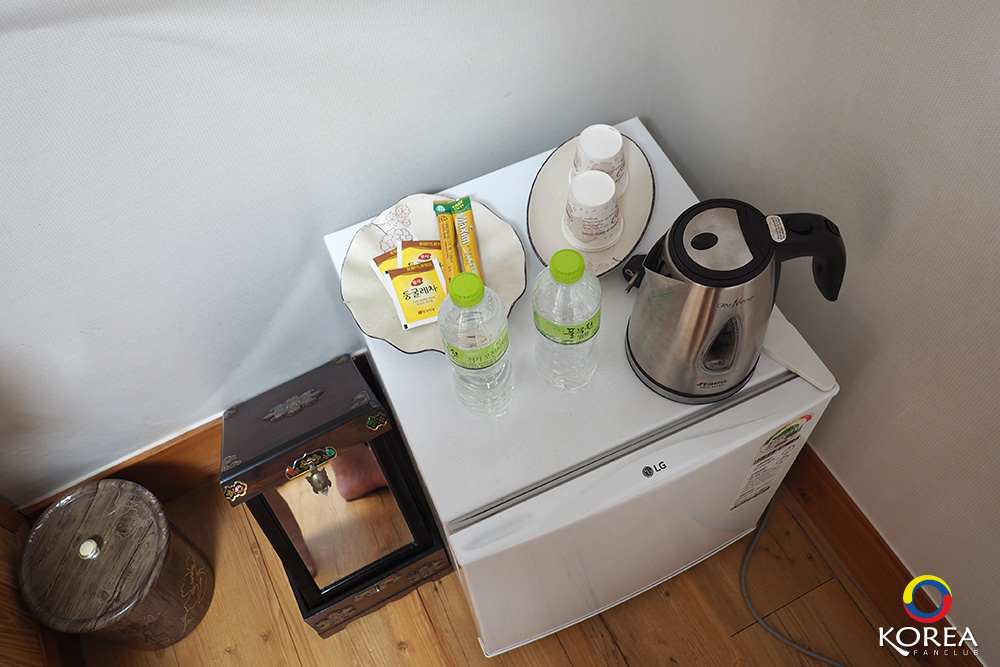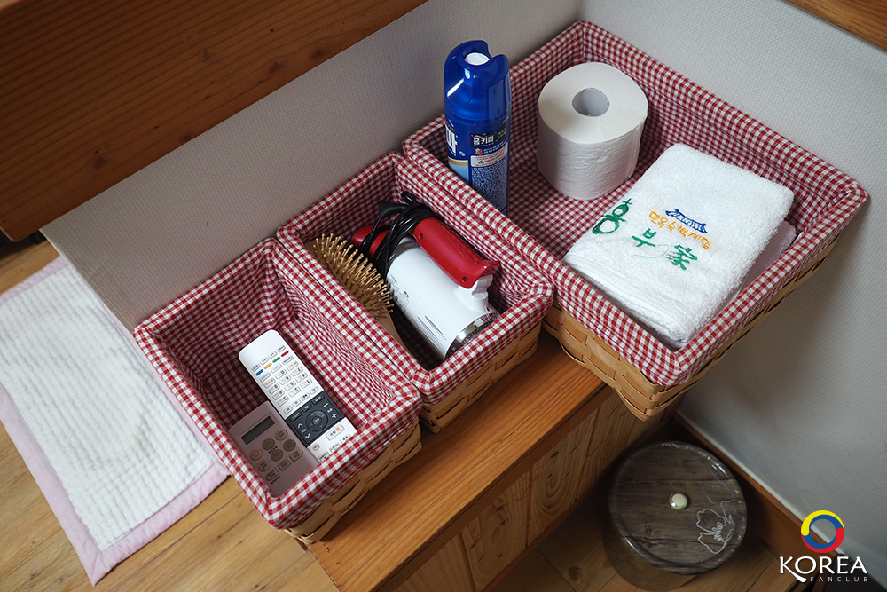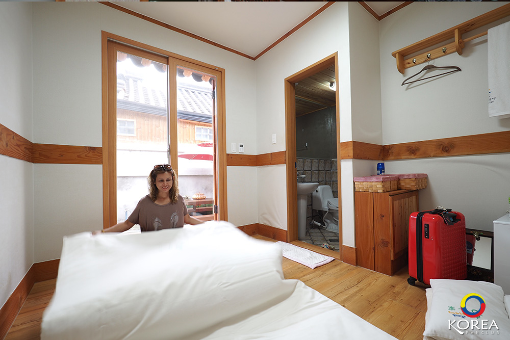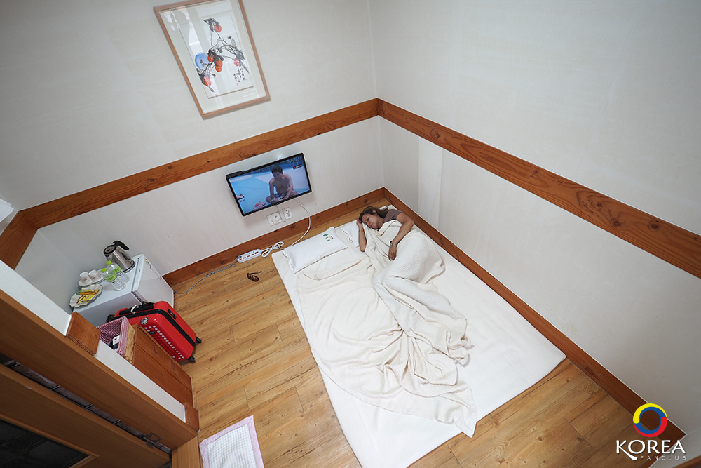 ไม่มีเตียง แต่จะมีฟูกให้ปูนอน แบบบ้านเกาหลีโบราณ ถ้ามาช่วงหน้าหนาวพื้นจะอุ่น บ้านฮันอกจะติดตั้งระบบ ondol (อนดล)
