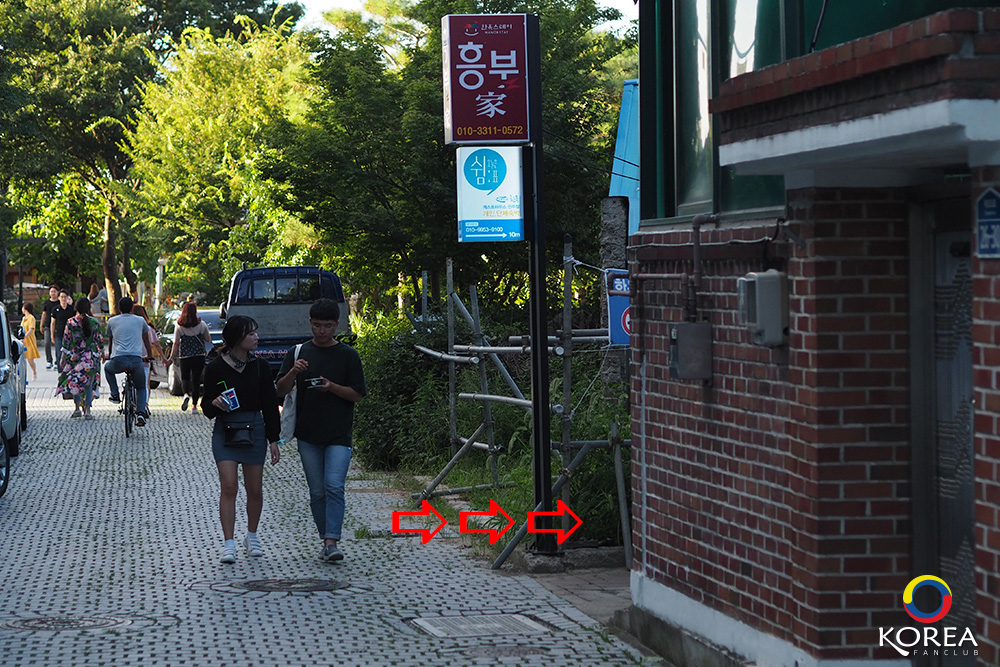 เดินออกมาปากซอย คือถนน Taejo-ro เป็นถนนเส้นหลัก ล้อมรอบด้วยร้านอาหารชื่อดัง