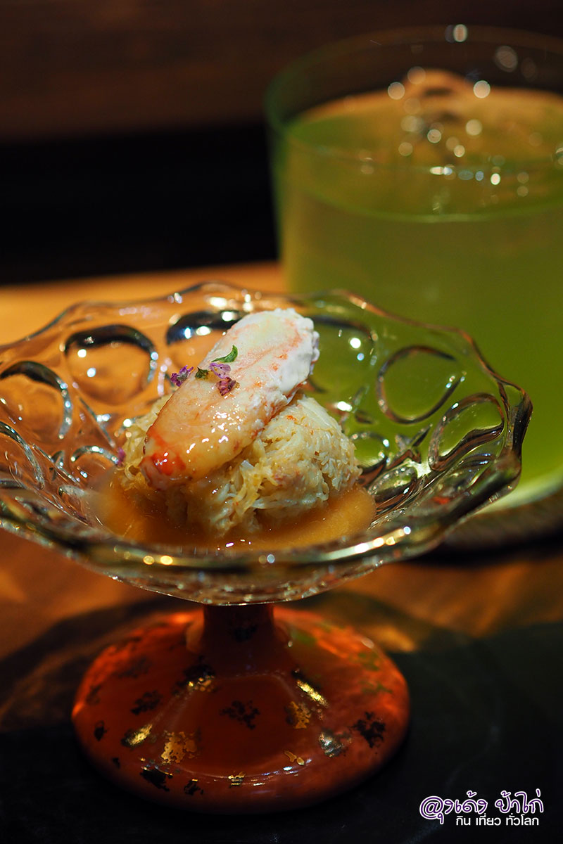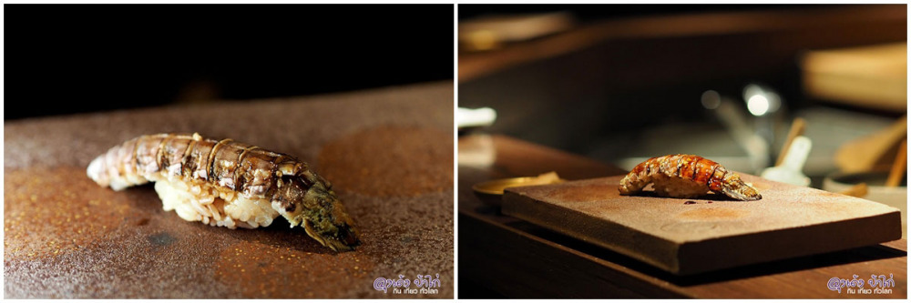 เชฟเลือกใช้กั๊งตัวเมีย ที่มีไข่อยู่เต็มตัวรูปร่างคล้ายกุ้ง แต่เนื้อเหมือนปู