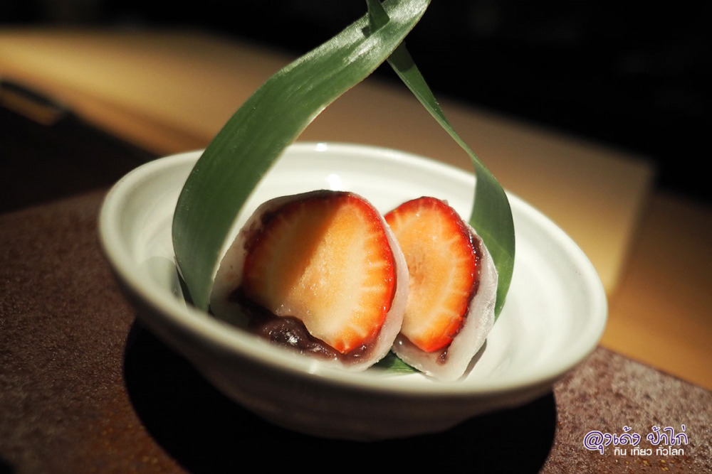 แป้งบาง ถั่วแดงกวน และ สตรอเบอร์รี่ลูกโต เป็นเมนูสุดท้ายของมื้อนี้