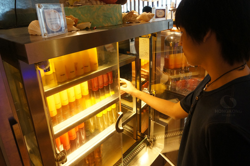 ที่ชอบที่สุดก็น่าจะเป็นตู้นี้ ตู้น้ำผลไม้คั้นกันสด ๆ หยิบได้ไม่อั้น ขอบอกเลยว่าน้ำมะม่วงอร่อยมาก ๆ