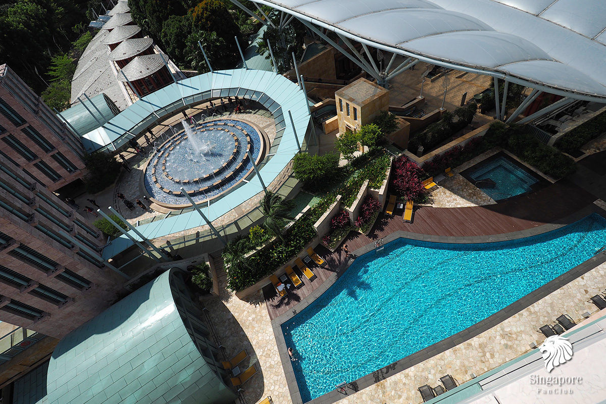 วิวจากห้องพักที่สามารถมองเห็นวิวบนเกาะ Sentosa ได้เกือบจะทั้งหมด