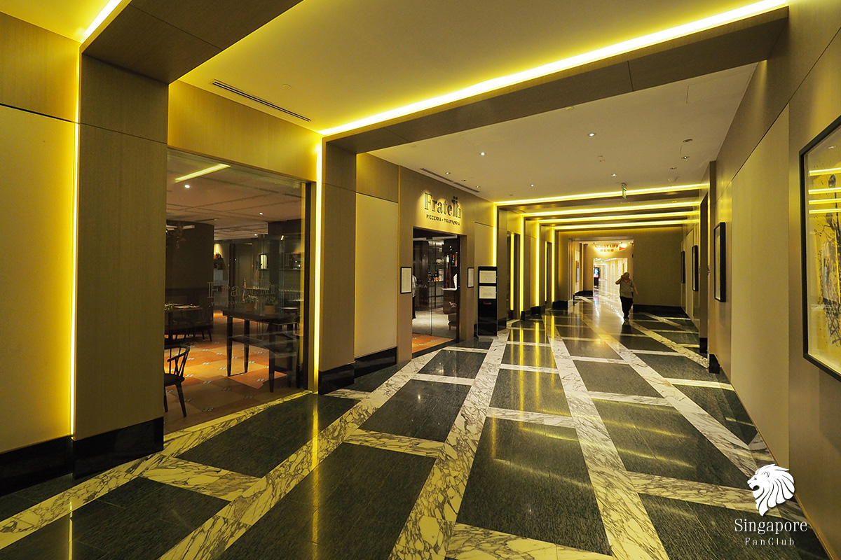 ทางเดินไปยังห้องพัก จาก Lobby จะเดินผ่านร้านอาหาร Fratelli แล้วก็จะถึงลิฟท์ ส่งขึ้นห้องพัก