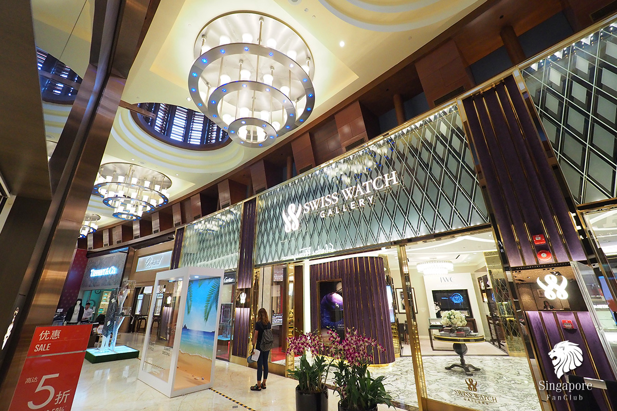 ทางเดินจากโรงแรมมุ่งหน้าไปยัง Universal Studios Singapore มีร้านแบรนด์เนมหรูๆ ให้เลือกซื้อตลอดทาง